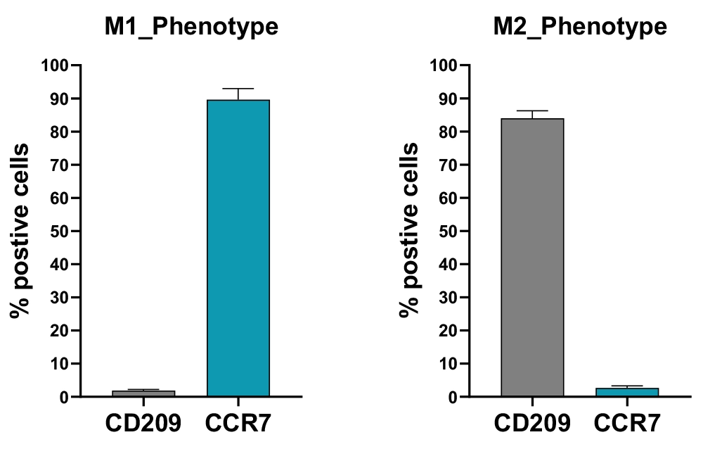 Isolated monocytes from fresh healthy donor whole blood were differentiated into macrophages. Validated by cytokine profiling and surface marker expression. Suitable In vitro assay models for measuring compound effect on macrophage cell function and gene expression.