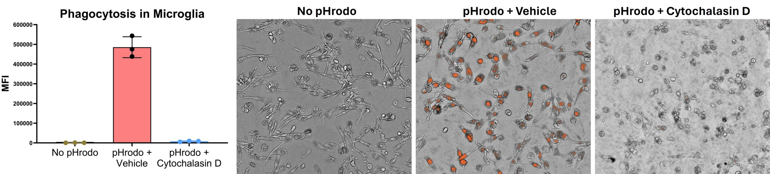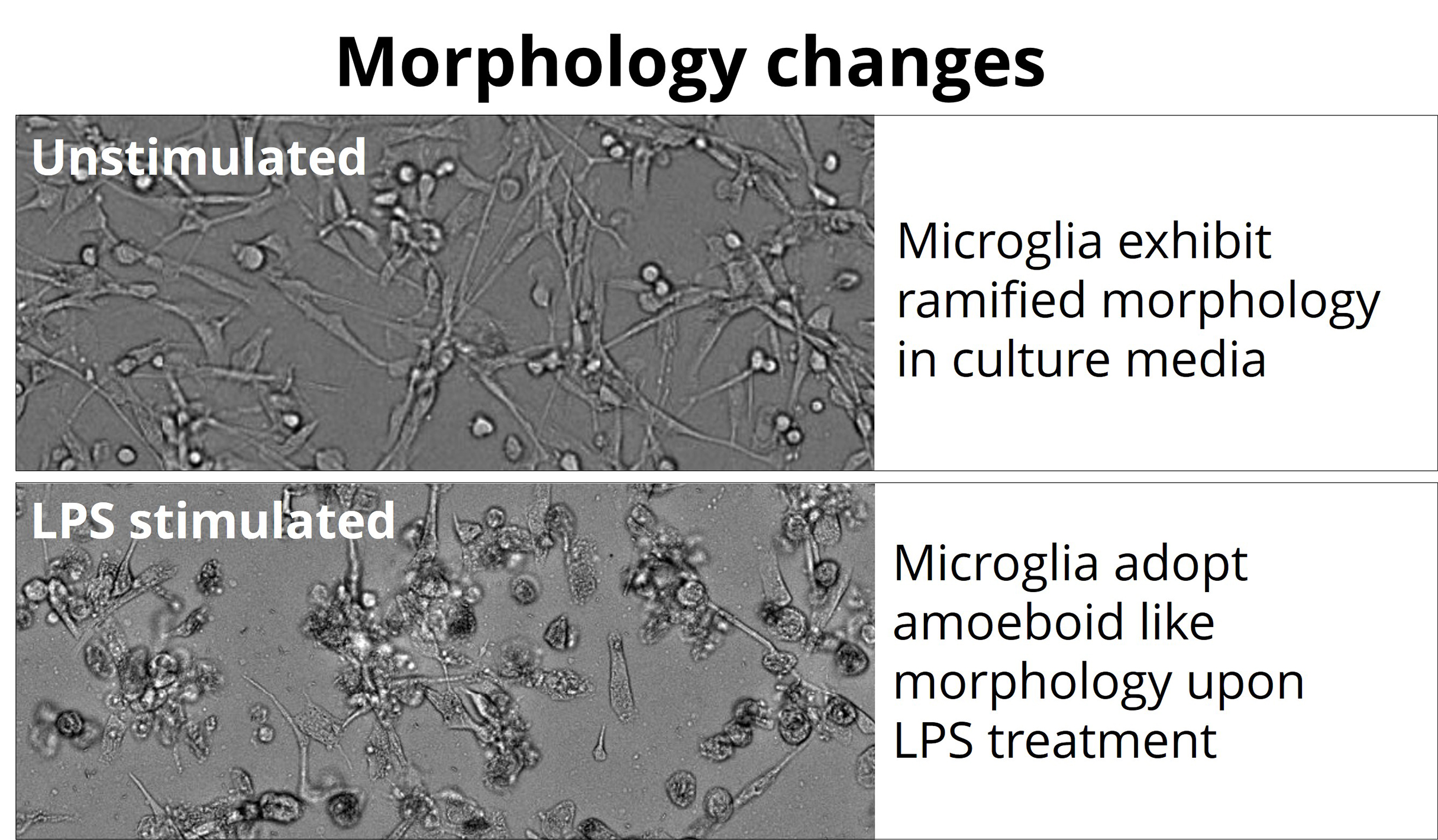 We utilise iPSC microglia assays as In vitro models for microglia mediated neuroinflammation. iPSC Microglia were characterised for TMEM119 and CD11b phenotypic markers (by cell imaging and flowcyte) and validated by cytokine release, phagocytosis, chemotaxis, and cell morphology.